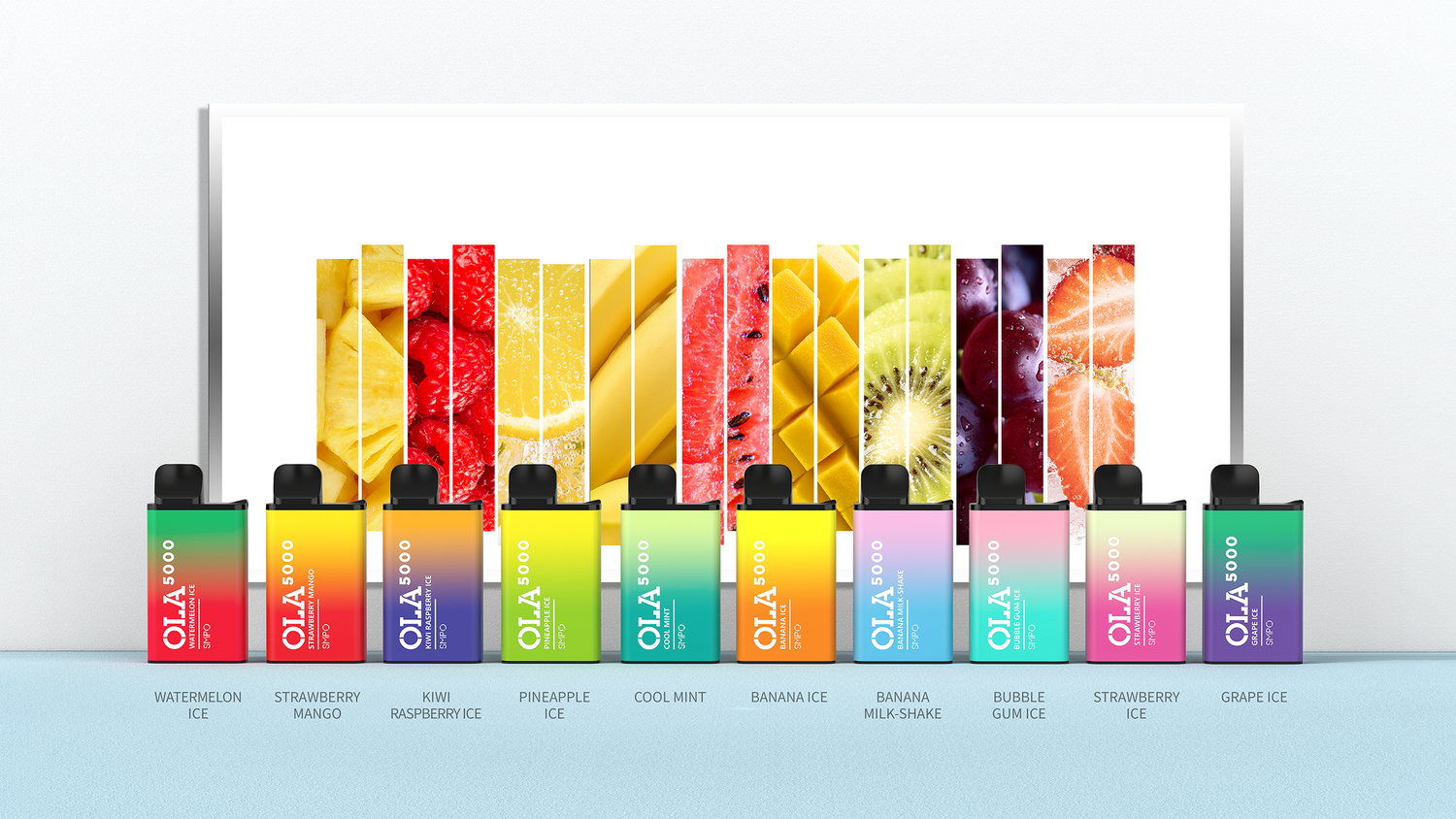 SMPO OLA5000 disposable vape offers a variety of 10 pure flavors in vibrant colors, including refreshing options like Banana Ice, Pineapple Ice, and Strawberry Mango. With these enticing flavors, SMPO OLA5000 caters to the preferences of all disposable vape users, delivering a delightful and invigorating experience.